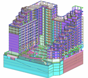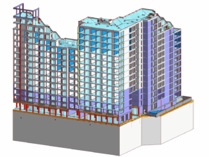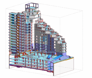 Budynek B z 3-kondygnacyjnym garażem podziemnym, część nadziemna w najwyższym jego fragmencie posiada 15 kondygnacji. Zabezpieczenie wykopu w technologii ścian szczelinowych. Posadowienie bezpośrednie na płycie fundamentowej oraz obwodowo na ścianach szczelinowych. Płyta fundamentowana kotwiona. Część podziemna wodoszczelna.